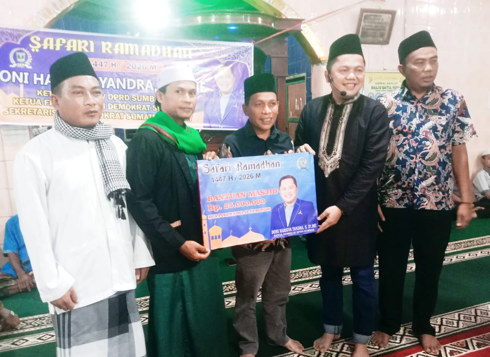 Dalam kegiatan Safari Ramadan tersebut, Doni Harsiva Yandra juga menyerahkan bantuan secara simbolis sebesar Rp25 juta untuk mendukung kelanjutan pembangunan Masjid Baitul Huda Ganting.