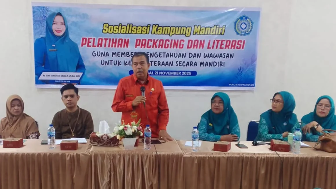 Pelatihan dibuka Kepala Dinas Dinas Pemberdayaan Masyarakat dan Desa, Pengendalian Penduduk dan Keluarga Berencana (PMDPPKB), Delfianto, Jumat (21/11/2025) di Aula Sekretariat TP-PKK Kota Solok.