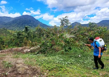 KLIKPOSITIF - Tim Herdanic melakukan upaya perbaikan tanaman yang sakit akibat musim kering bekepanjangan di Kabupaten 50 Kota Sumbar. Kali ...