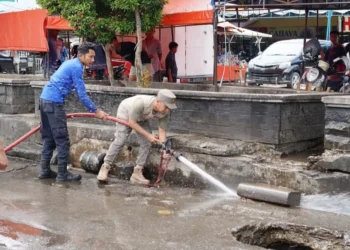 Petugas Disperkim LH Pangkas Pohon Pelindung di Pasar Raya Solok